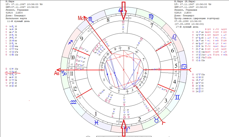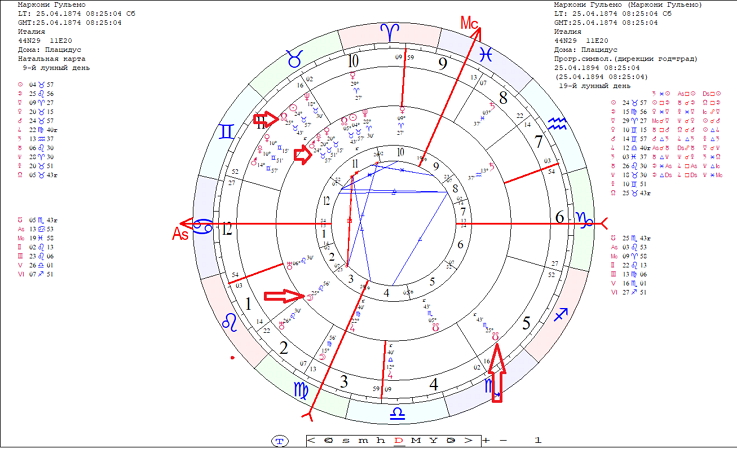 СЛУ в дирекциях 1894 года соединение Марс натал. Марс управитель 11 го дома. ЛУ дирекционные 90 Луна натал. Луна управитель АСЦ.