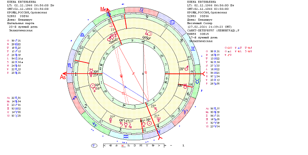 Наложение месячного соляра на радикс - февраль 2021г.