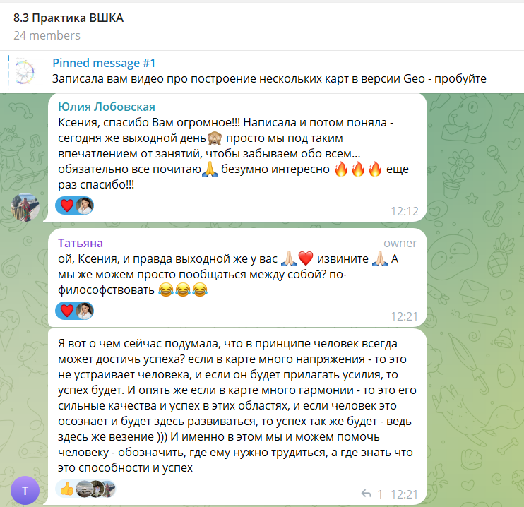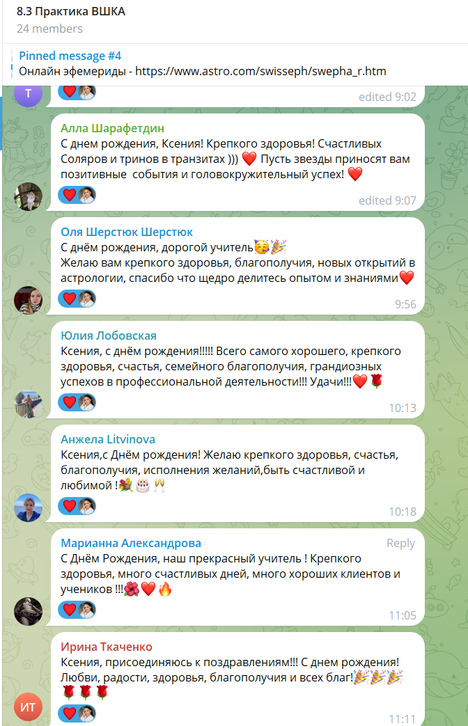 «Выражаем огромную благодарность нашему преподавателю — Александру Айчу! Спасибо, что все эти годы он делился с нами своими бездонными знаниями и разжигал огонь любви к Астрологии. Благодарим его за то, что был рядом и шел навстречу нашим ураническим идеям. Александр открыл для нас безграничную глубину эзотерических знаний и заинтересовал манящим новым миром. Из океана информации наш преподаватель, как проводник, доставал самое интересное, и что важно, преподносил знания с юмором и азартом первооткрывателя. А для новых студентов хочется отметить: обучение у Александра полезно, потому что, кроме знаний, получаешь инструменты их использования — методы и техники анализа разных типов карт, знание подходов к работе с клиентами. По итогам пройденного обучения мы ощущаем себя выпускником ВУЗа, а не школы, так как, хочется отметить высокий уровень информации, в том числе исторический срез и древние интереснейшие методики. С Уважением, Вера Фирулина и выпускники 2023 года обучения группы А. Айча. 15.12.2023»
